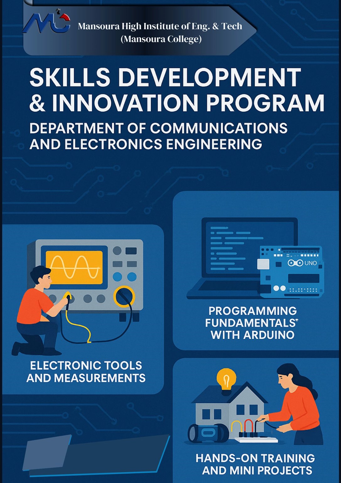 يعلن معهد المنصورة العالي للهندسة والتكنولوجيا– قسم هندسة الاتصالات والإلكترونيات عن فتح باب التسجيل في البرنامج التدريبي الصيفي بنظام الساعات
